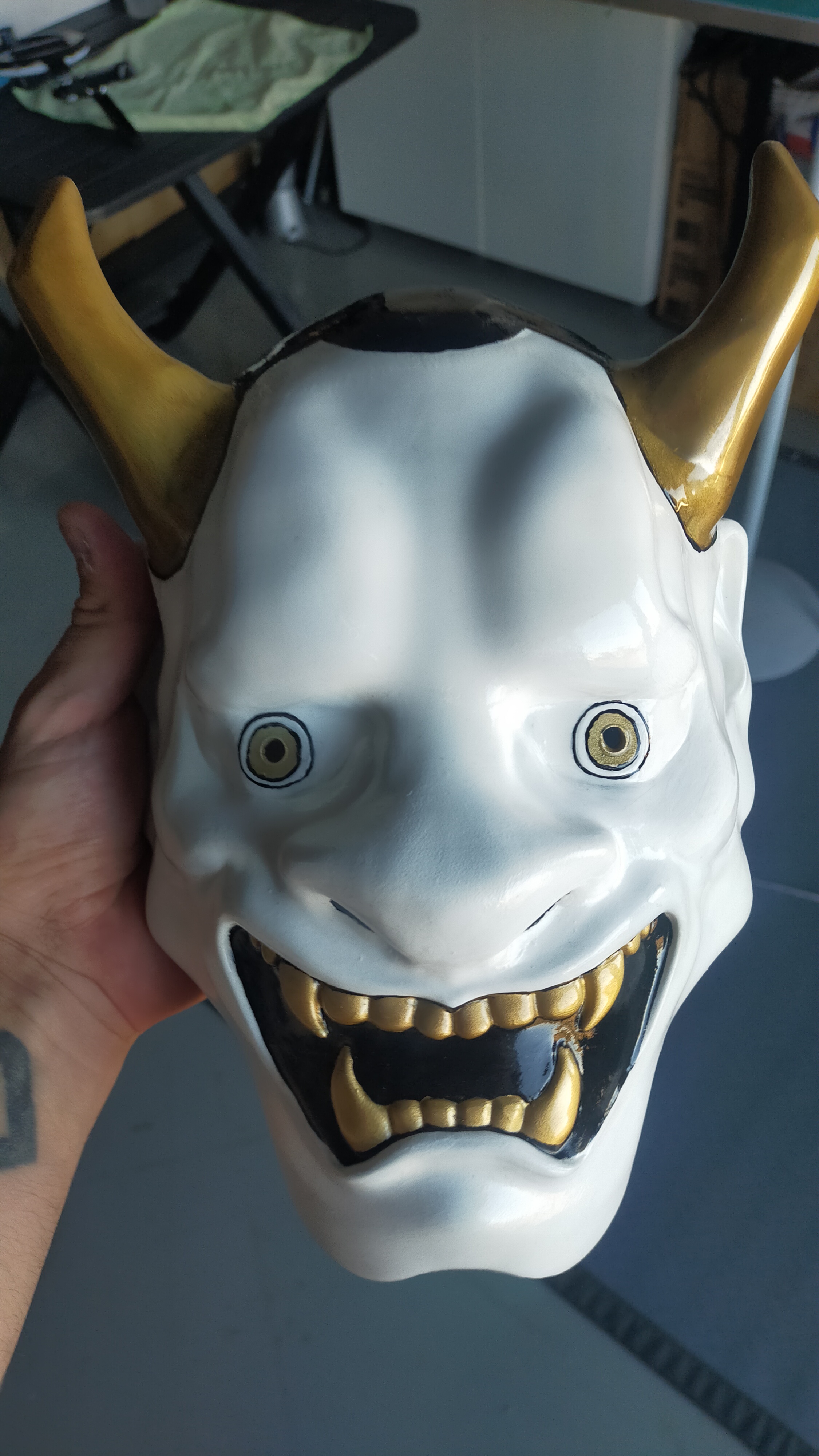 Máscara Hannya modelada en 3D e impresa en resina. Lijada y pintada a mano. Un encargo exclusivo para Evil Doers.