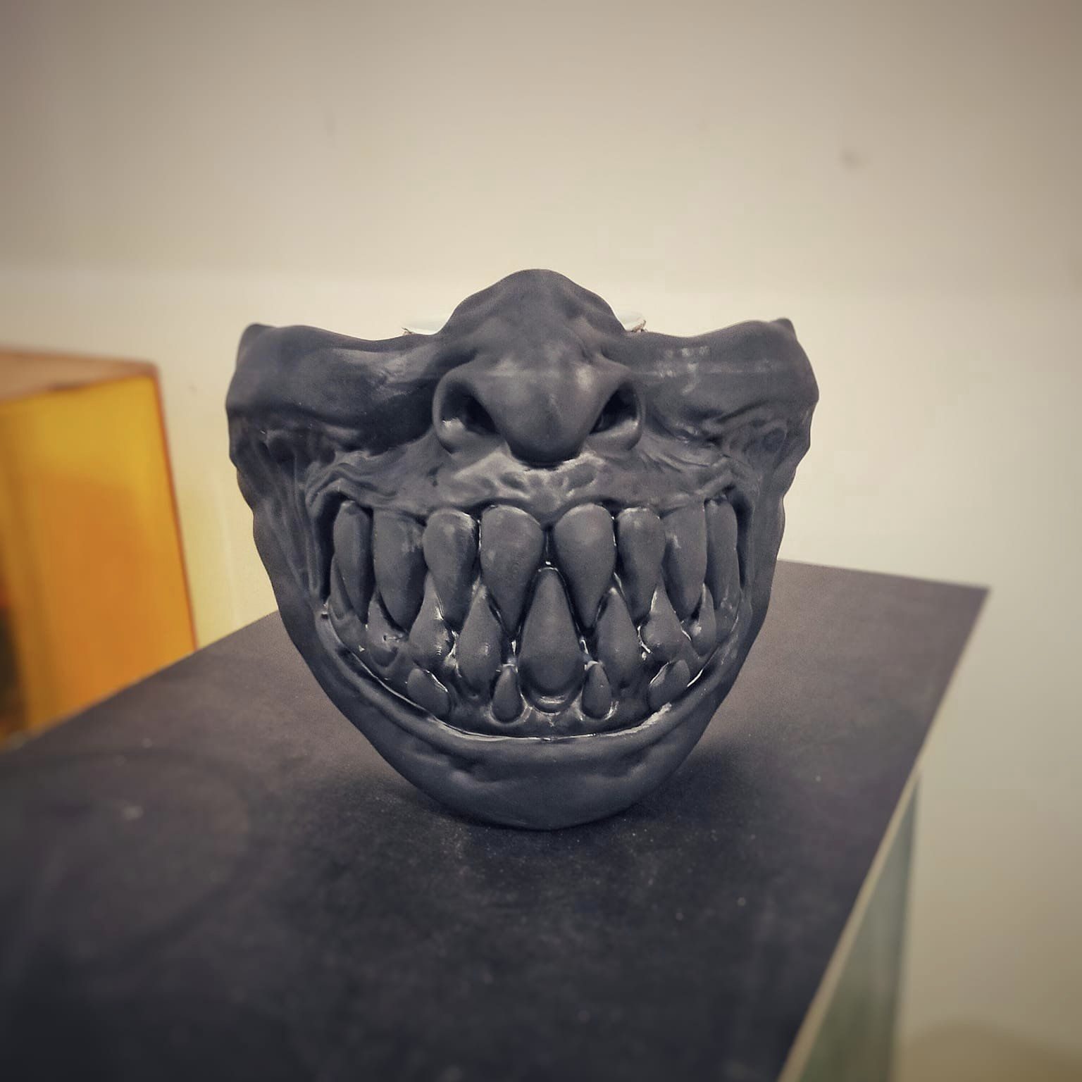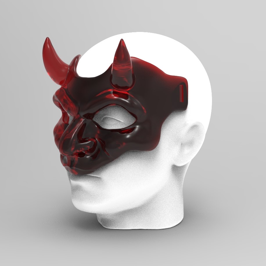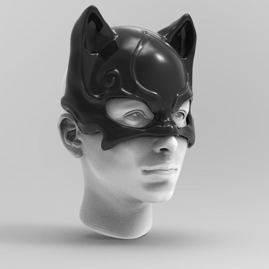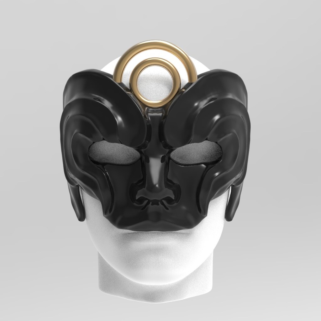 En la actualidad me estoy especializando en el diseño de máscaras. Las modelo en Zbrush sobre un busto masculino o femenino. De media cara inferior, de media cara superior o de cara completa. Uso Keyshot para sacar algunos renders como referencia en colores planos, para ver como quedaría en barniz brillo, mate o satinado. Finalmente exporto los archivos como obj para usarlos en software de impresión.