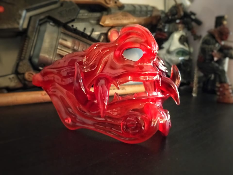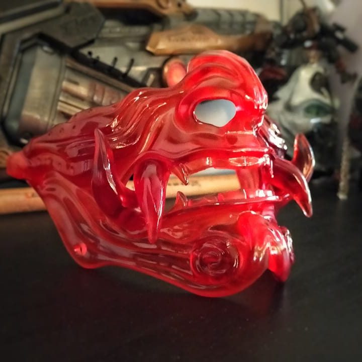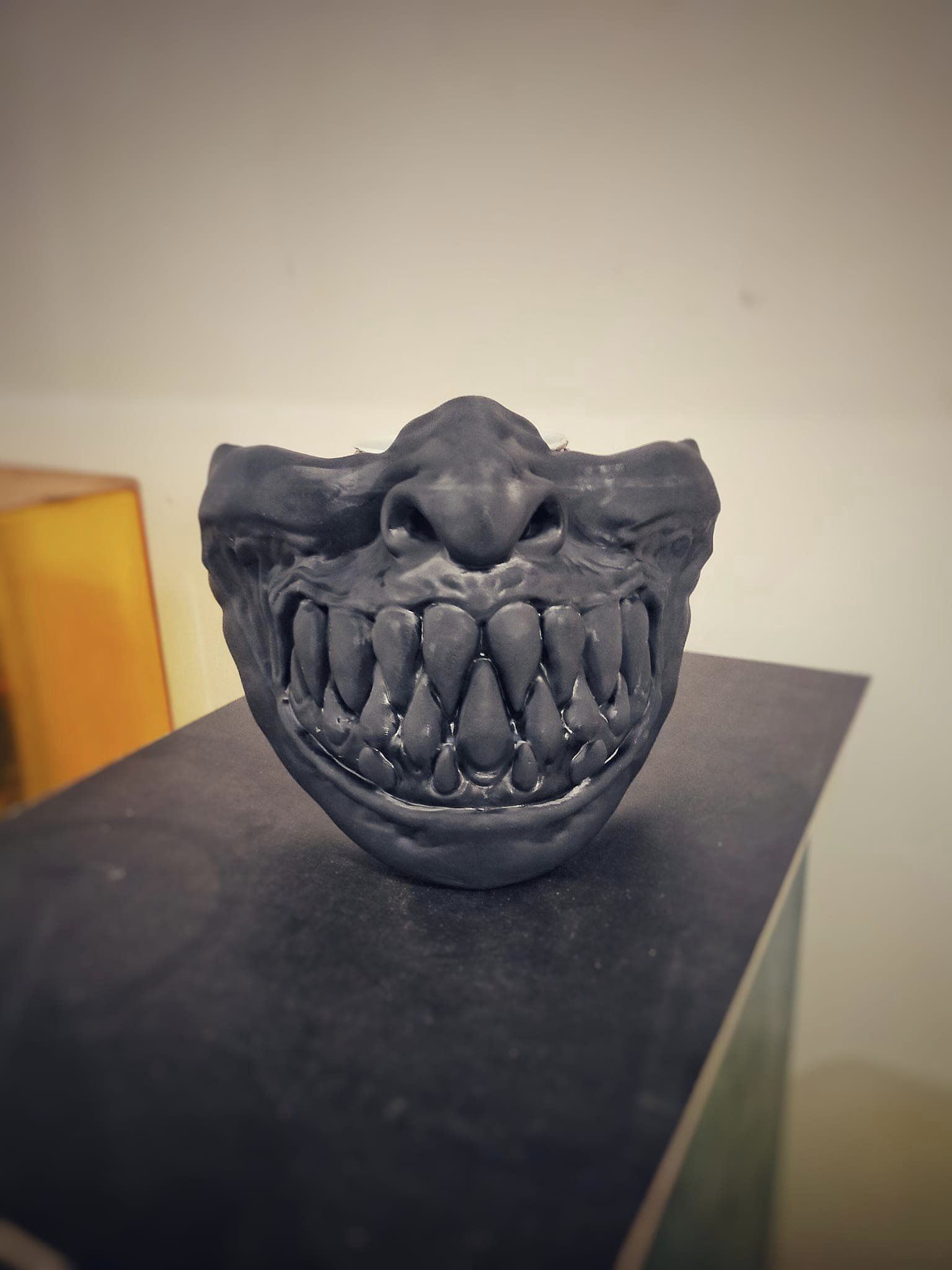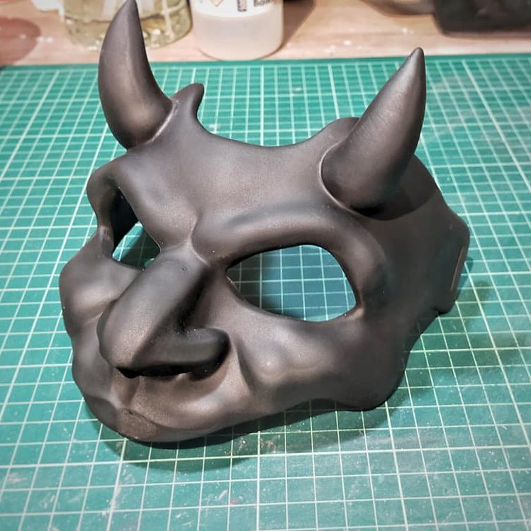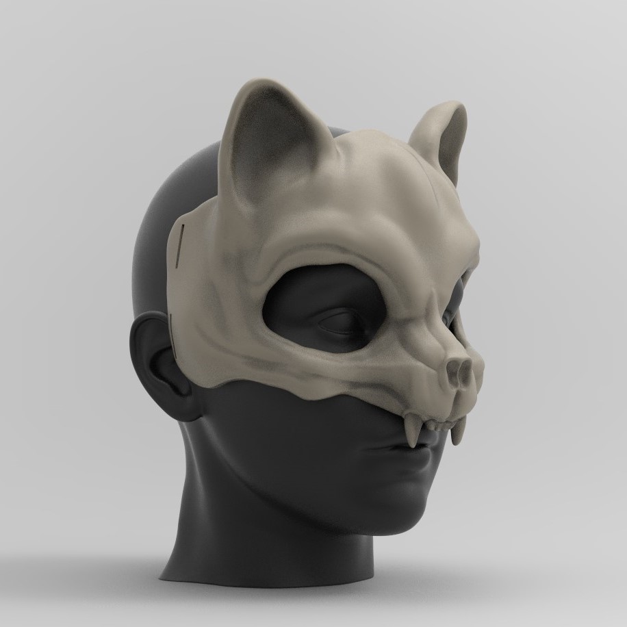 En la actualidad me estoy especializando en el diseño de máscaras. Las modelo en Zbrush sobre un busto masculino o femenino. De media cara inferior, de media cara superior o de cara completa. Uso Keyshot para sacar algunos renders como referencia en colores planos, para ver como quedaría en barniz brillo, mate o satinado. Finalmente exporto los archivos como obj para usarlos en software de impresión.