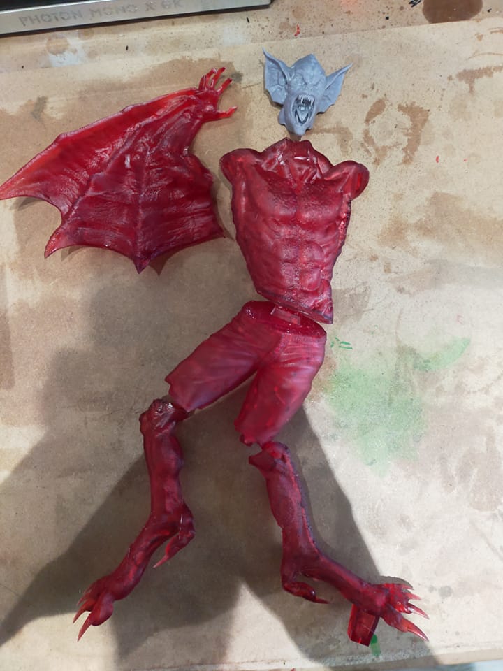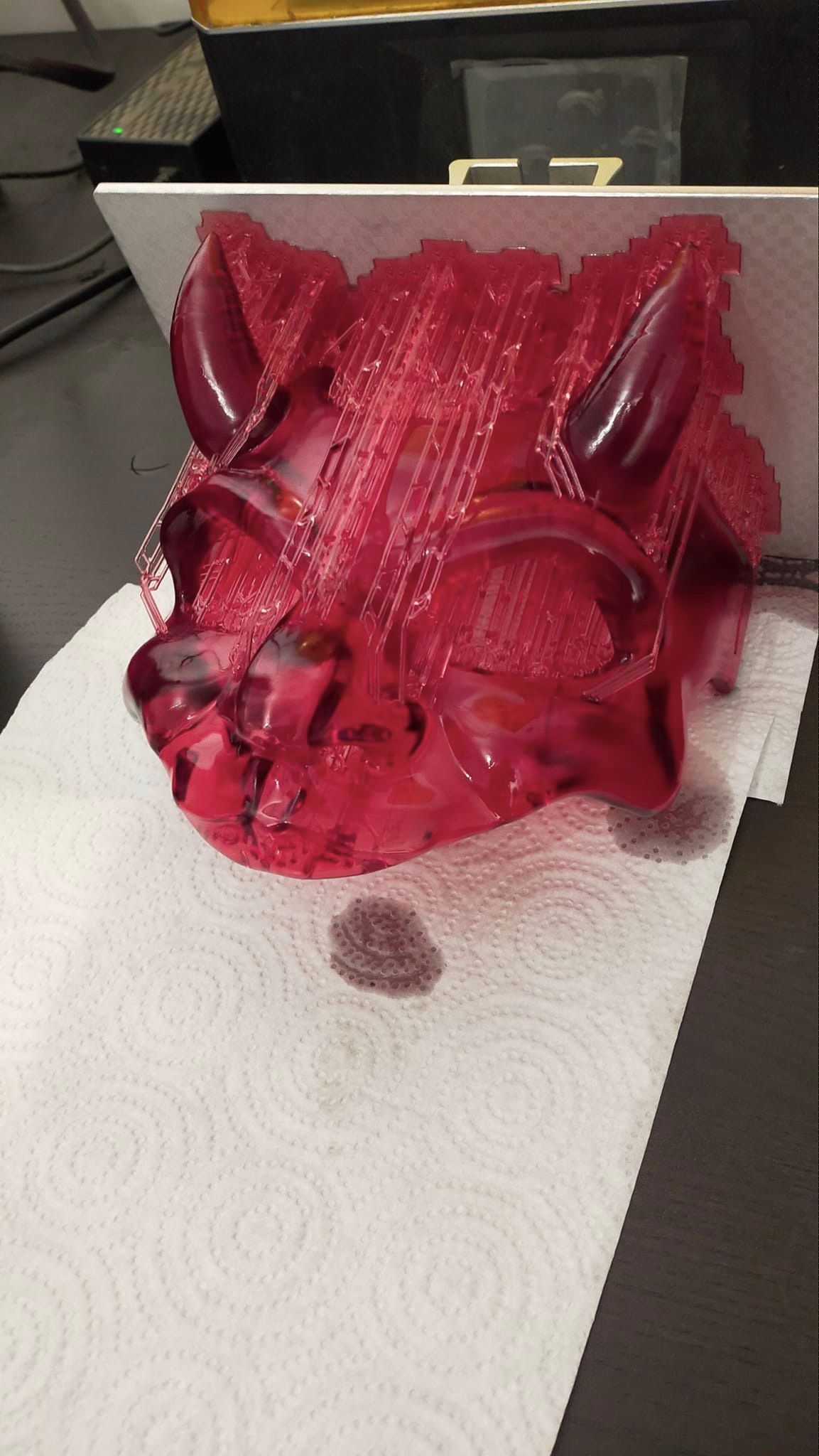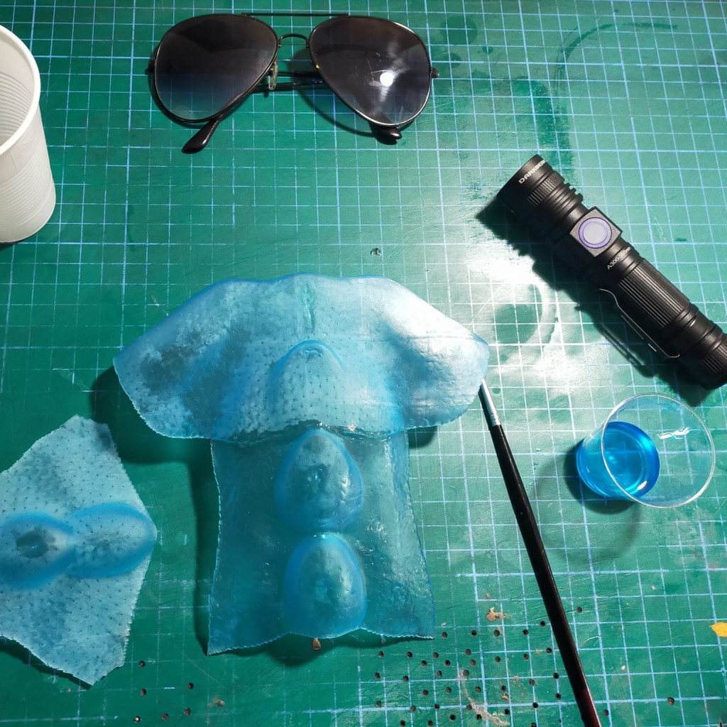 Para imprimir utilizo dos tipos de impresora. Comenzaré a hablar por la impresora de resina. La uso para piezas de alto detalle y actualmente para imprimir máscaras de media cara. Si las piezas son más grandes las divido en varias piezas para luego pegarlas entre si con la propia resina.