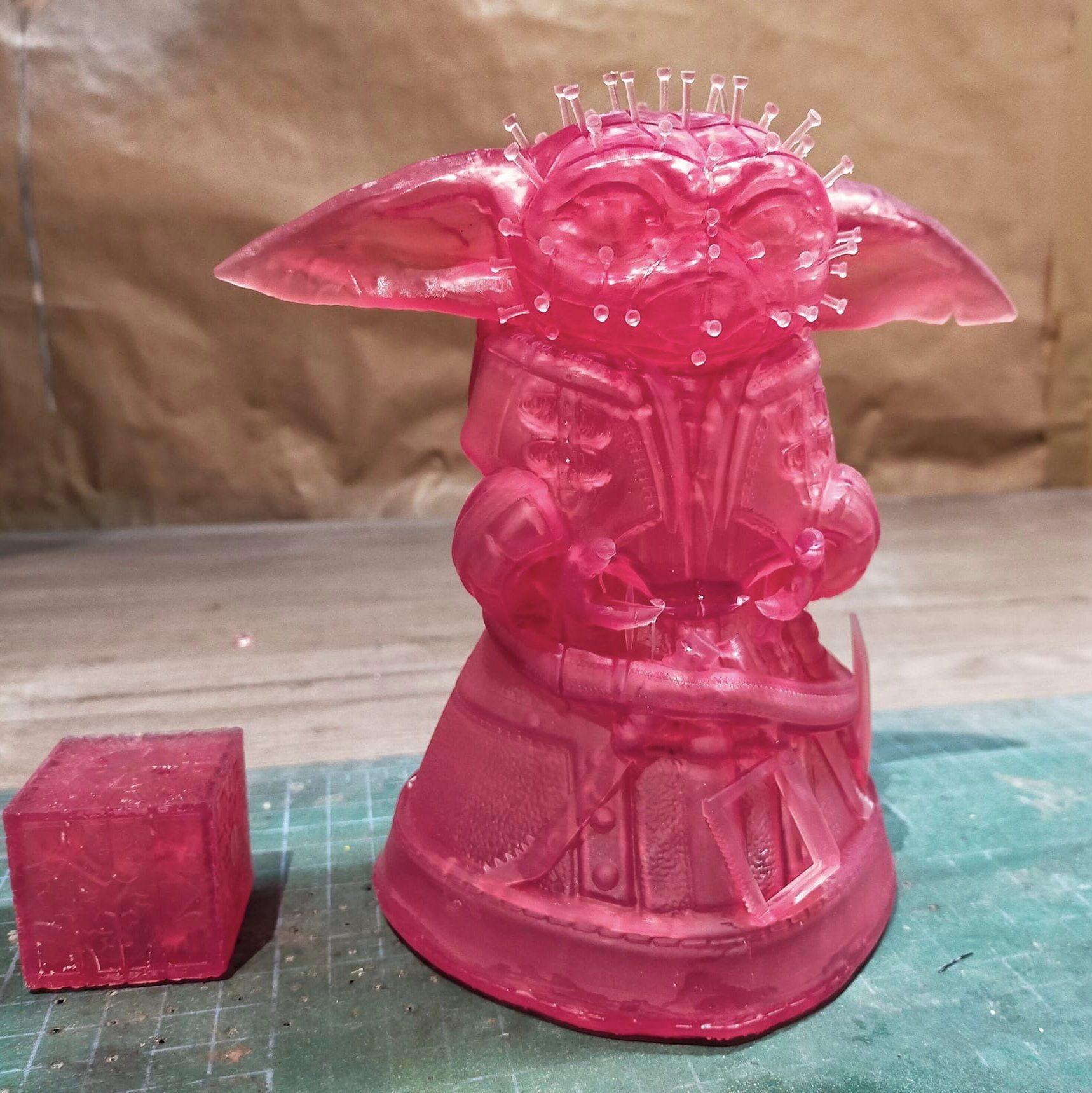 Una vez sacadas las piezas de la impresora, pasamos por una serie de procesos antes de pintar las piezas. Las piezas impresas con la impresora de resina suelen tener menos trabajo que las piezas que salen de una impresora de filamento.